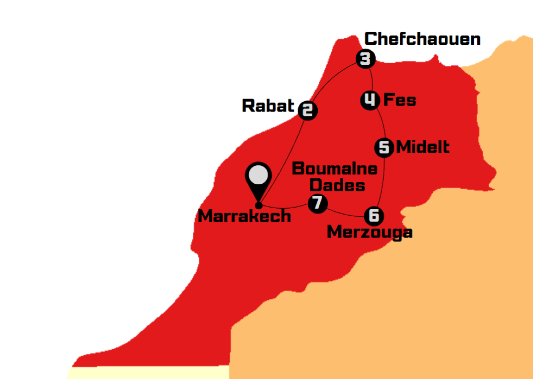 Arriving in Marrakech, you’ll be overwhelmed by the magic of the city, marking the end of this incredible motorcycle adventure, an experience that has taken you to discover Morocco like you could never have imagined!