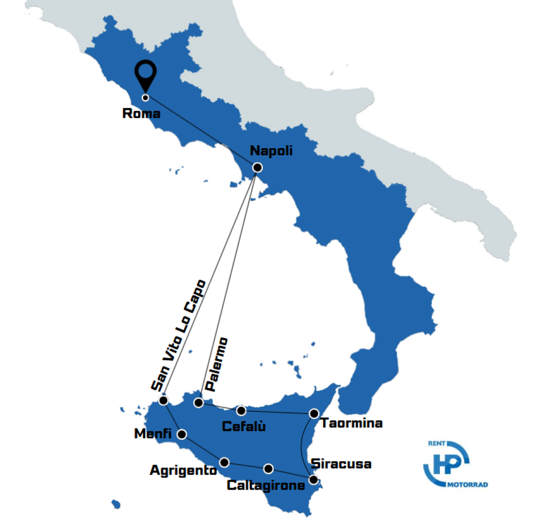 La Sicilia è la più grande regione d'Italia, che è sempre stata il centro delle civiltà mediterranee. Da secoli suscita interesse la sua posizione, la ricchezza delle sue terre, l'imponente segno di una storia millenaria. Inoltre, il suo clima lo rende una delle destinazioni più richieste nei motociclisti di tutto il mondo.